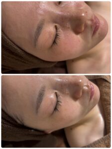 こちらお客様は陶肌トリートメント(ハーブピーリング)と黄土よもぎ蒸し月1回、5回目のお肌の変化です!
